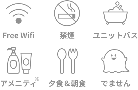 ※各部屋に冷蔵庫、パジャマはありません。